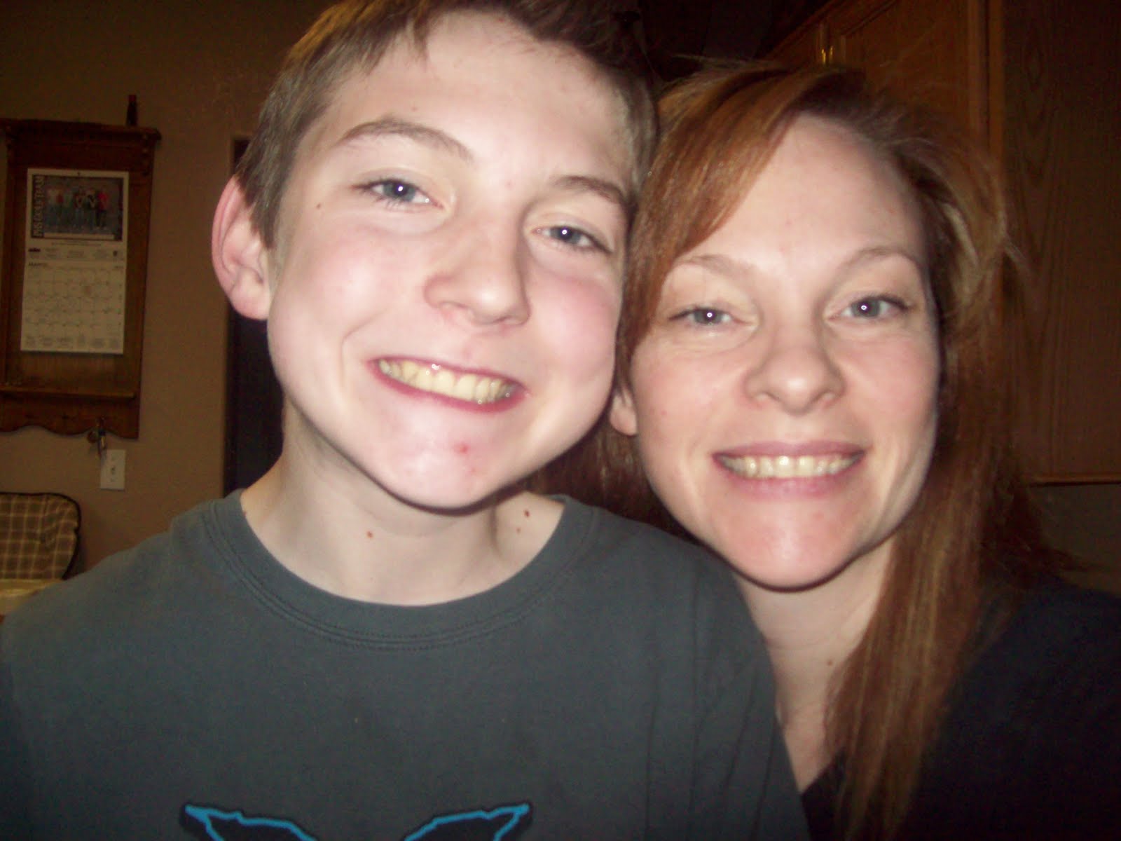 Kyler and Hannah painting. (Kyler is standing on one leg, for some reason.)